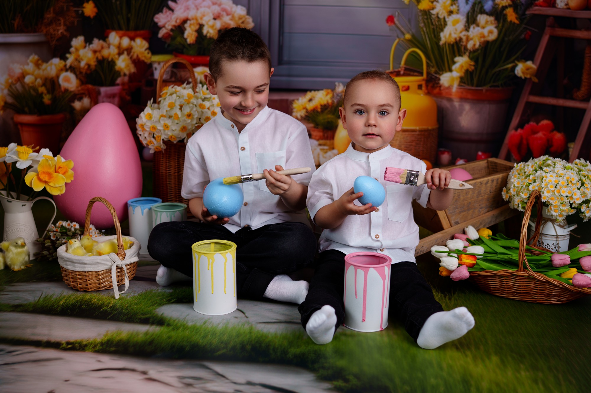 Podczas takiej sesji pełnej kolorowych rekwizytów i mnóstwa uśmiechów wykonujemy ujęcia indywidualne, rodzeństwa, koleżeńskie oraz grupowe.